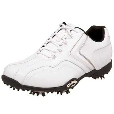 Callaway Chev Golf Shoes (White/White/Silver): These Callaway Chev Golf Shoes feature a welt-stitched midsole, full-grain textured leather and Chevron comfort spikes for superior traction